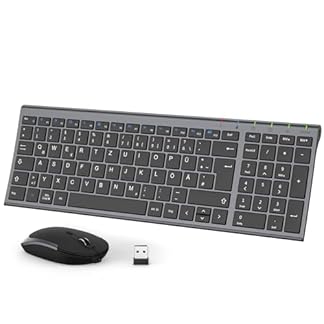 €51,00Produkt kaufen2.4G Maus Set kabellos, iClever Aluminium Wireless Slim Tastatur QWERTZ Layout (Deutsch), für Computer/Desktop/PC/Laptop/Oberfläsche/Smart TV und Windows 10/8/7/Vista/XP (2.4GHz, USB)