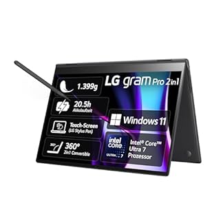 €1952,00Produkt kaufen2024 LG gram Pro 16 Zoll 2in1 Notebook – 1399g Intel Core Ultra7 Laptop (16GB RAM, 1TB Dual SSD, 20,5h Akkulaufzeit, OLED Touch Panel, LG Stylus Pen, Win 11 Home) – Schwarz